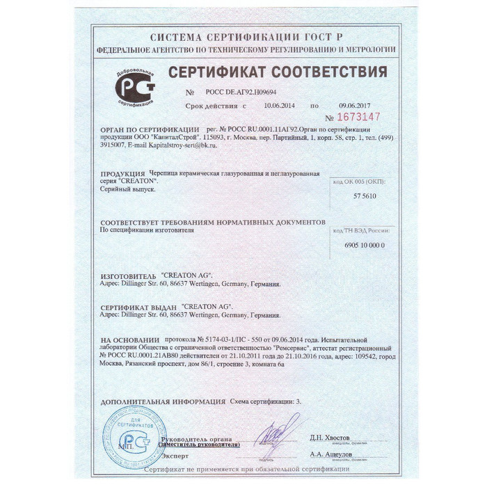 Кроме того, керамическая кровля обладает следующими характеристиками: