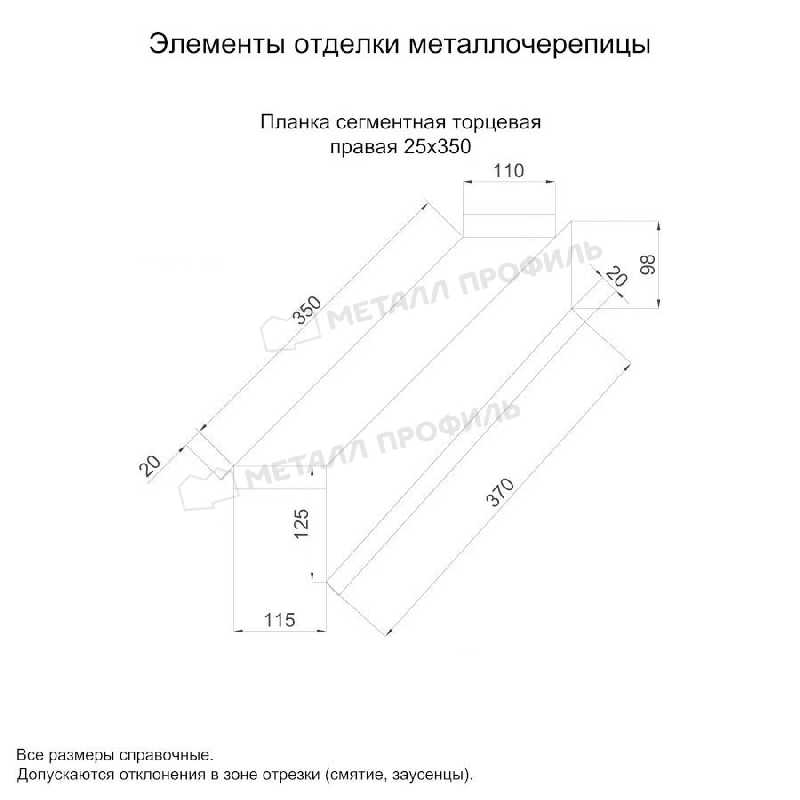 Планка сегментная торцевая правая 350 мм (PURMAN-20-3005-0.5)