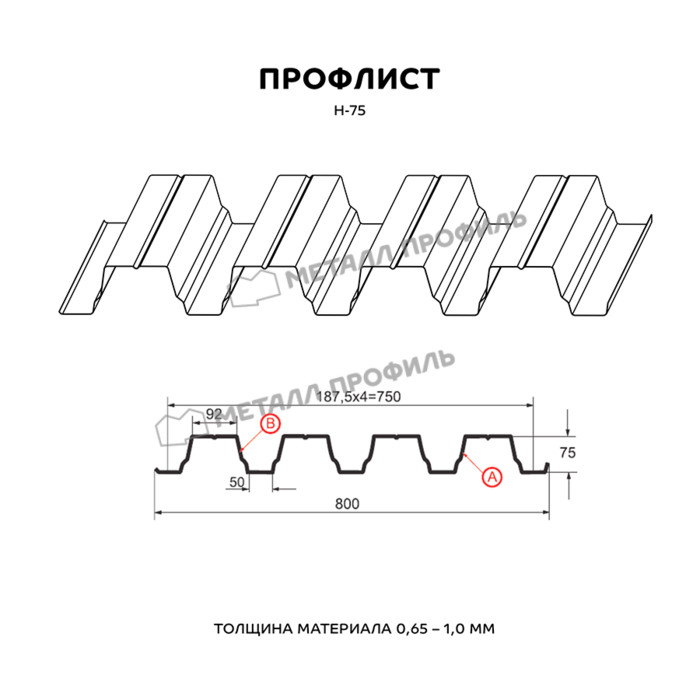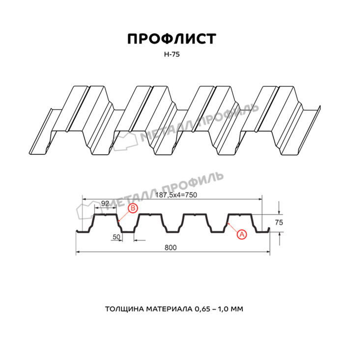 Профлист Н-75 для кровли Металл профиль