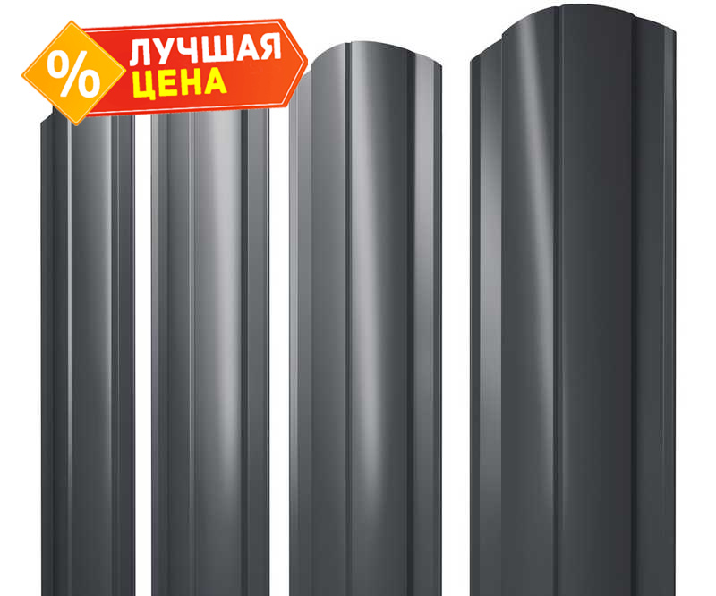 Штакетник Круглый фигурный Grand Line 0,45 Drap RAL7024 Мокрый Асфальт