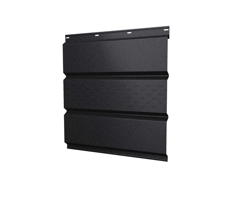 Софит металлический центральная перфорация 0,45 Drap ST с пленкой RAL 9005 черный - это качественный и стильный элемент отделки для вашего дома. Изготовлен из металла толщиной 0,45 мм, что обеспечивает прочность и долговечность. Софит имеет центральную перфорацию, которая не только придает ему эстетическую привлекательность, но и обеспечивает хорошую вентиляцию помещения. Покрыт пленкой RAL 9005 черного цвета, что придает ему элегантный и современный вид. Софит металлический центральная перфорация 0,45 Drap ST с пленкой RAL 9005 черный легко монтируется и не требует особого ухода. Он идеально подходит для использования как внутри, так и снаружи здания, и станет отличным дополнением к любому интерьеру или экстерьеру.